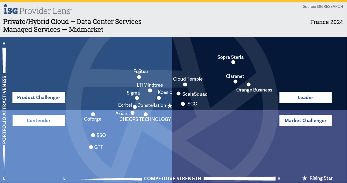 We are delighted to announce that Orange Business has been named a Leader in a recent study by ISG Research on Private/Hybrid Cloud – Data Center Services in France for the second year in a row. This recognition highlights our commitment to providing robust, sovereign and innovative private and hybrid cloud solutions and services to our clients. Our progression in this Provider Lens is the result of Orange Business investments in transformation and strategy focusing largely on trusted and sovereign infrastructure, end-to-end services and strategic partnerships with hyperscalers.