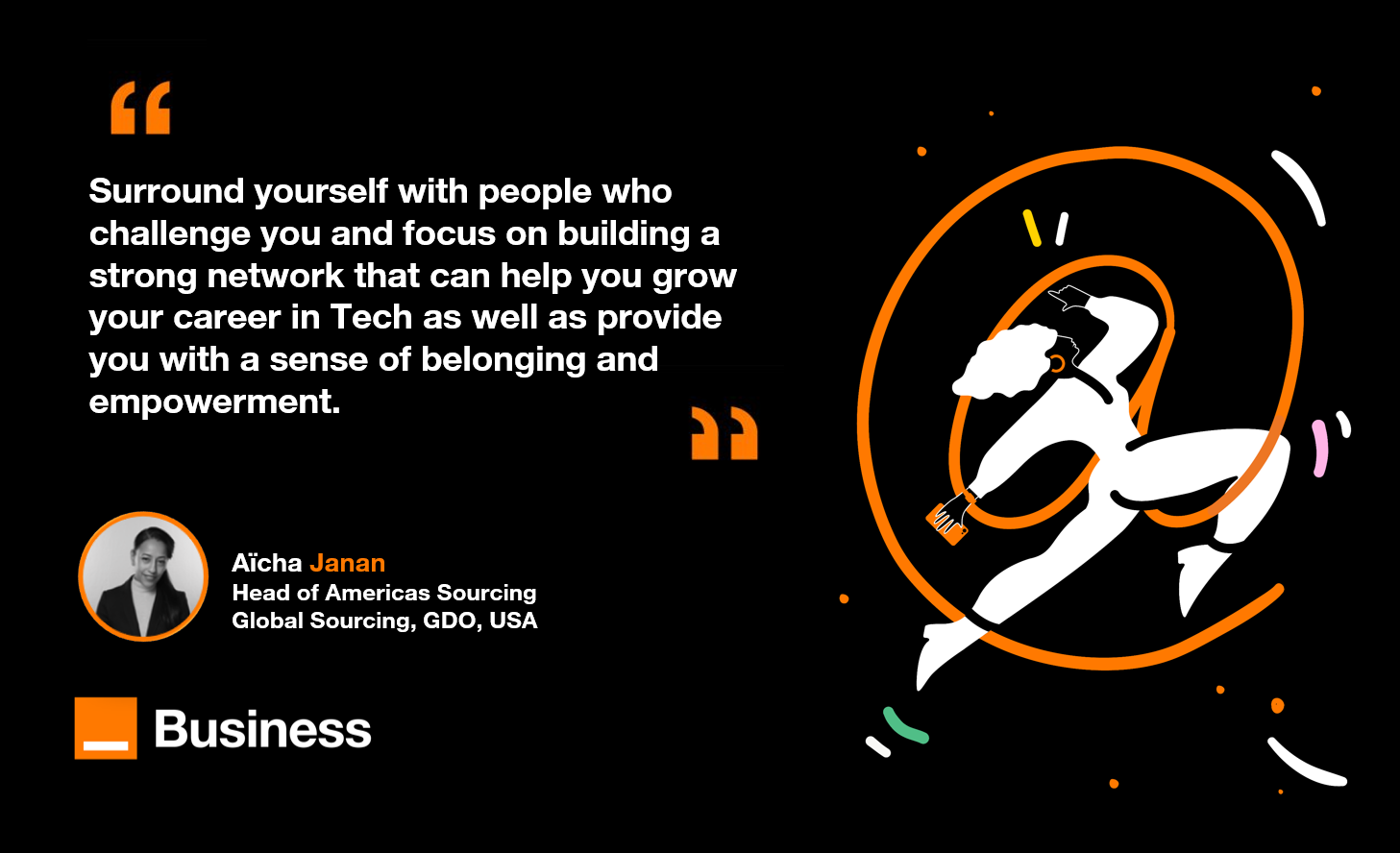 [Aïcha Janan]: As Head of Americas Sourcing and representing Orange Business in negotiations, I am often the only woman in the room. In a situation like this, having confidence in yourself is key, and speaking up will carry you through. I feel empowered to be myself and want to serve as an example that women can succeed in a male-dominated field. I have had great mentors along my career path who have motivated me to realize my full potential, and I like to do my part to give back to women I mentor to do the same. As the saying goes, “empowered women empower women,” and those are words I strive to embody every day.