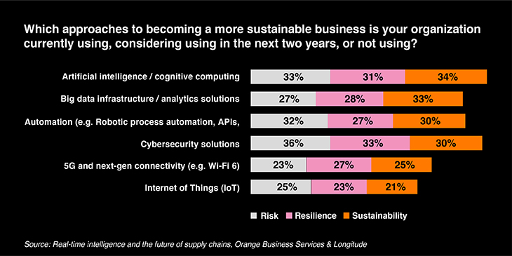 This has triggered the examination of current processes. Are enterprise supply chains fit for purpose in the new normal? In a bid to answer this, Orange Business commissioned Longitude to carry out an in-depth study of 320 of the world's largest enterprises, spanning 18 countries together with interviews with six leading supply chain experts. The report, Real-time intelligence and the future of supply chains, explores the way multinationals are speeding up their AI, data analytics and digitization programs to solve these supply chain challenges, including sustainability.