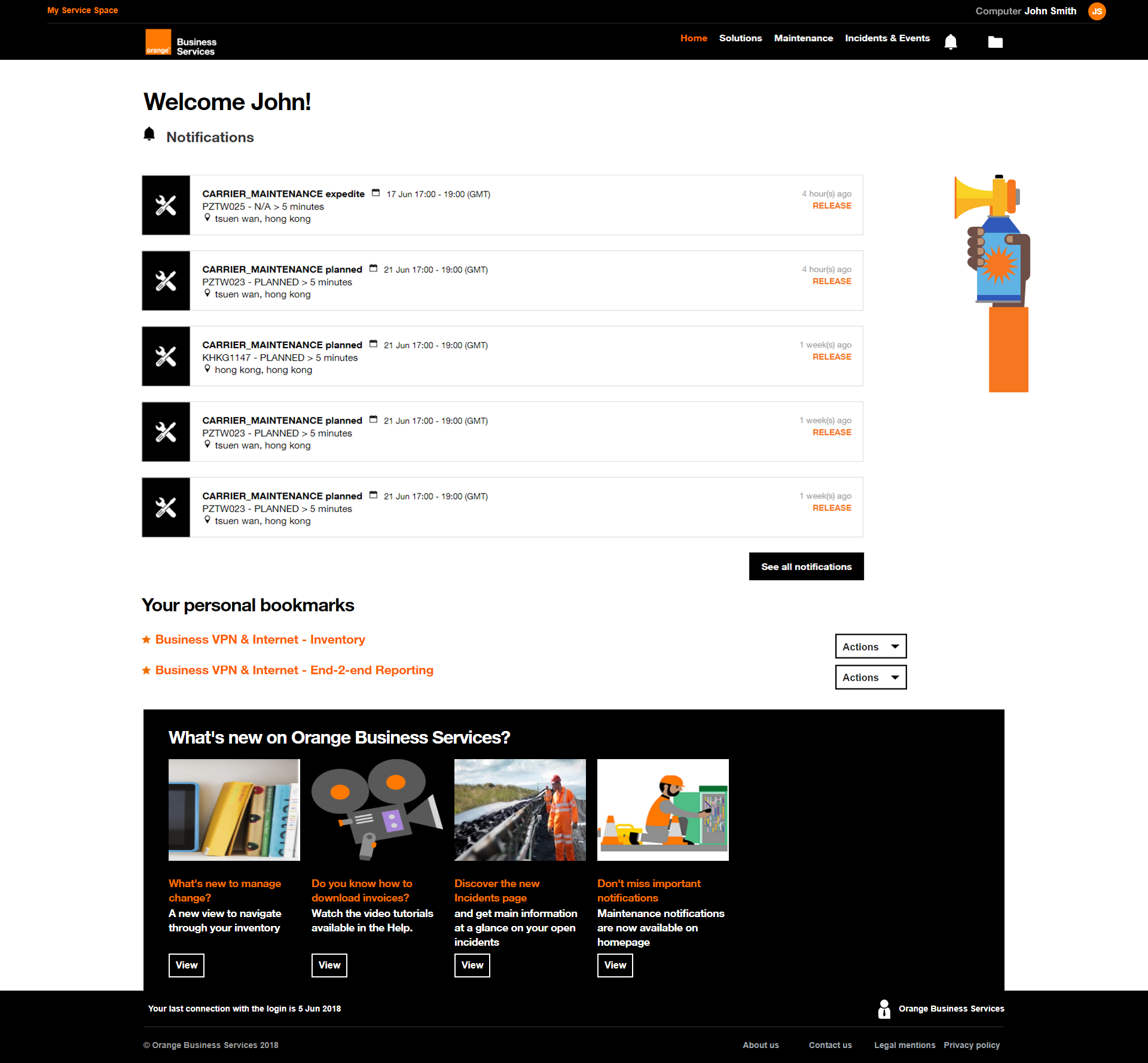 My Service Space is your online service portal that covers many of Orange Business products and services. It is designed for multinational companies and is included in your overall service charge. It offers a secure access to tools and benefits to help manage your Orange Business solutions, reduce costs, and optimize your business.