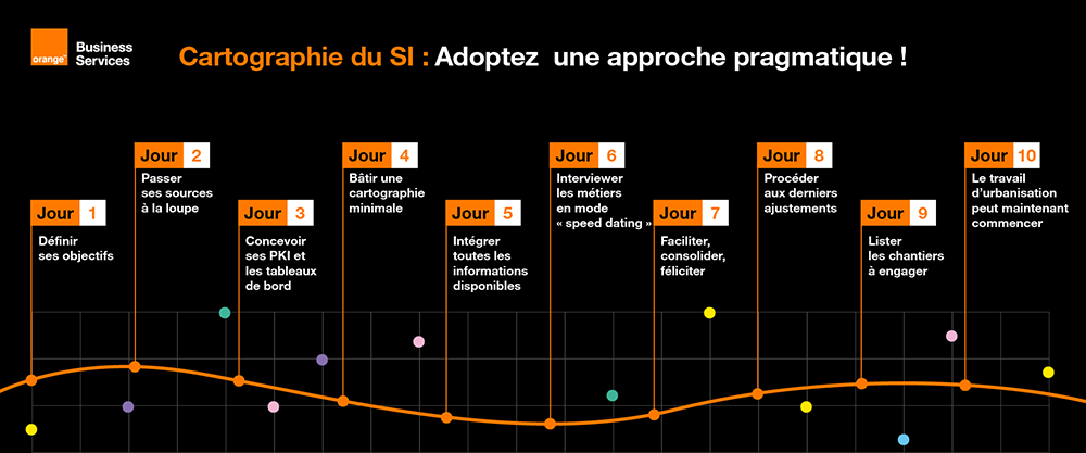 Cartographier son système d’information, une mission forcément fastidieuse ? Je ne crois pas ! Chez Orange Business, nous vous proposons une approche pragmatique en 10 étapes pour mener ce travail de manière simple, rapide et efficace.