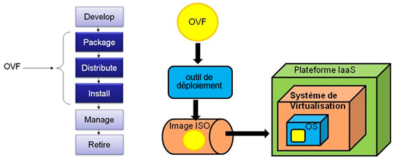 Un format ouvert pour l'emballage et la distribution des applicatifs virtuels est spécifié à l'organisme l'organisation de normalisation Distributed Management Task Force DMTF et reconnu par l'ISO/IEC comme un premier standard international sur la portabilité entres les infrastructures de plateformes IaaS cloud.