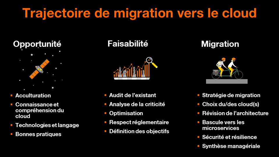 Les 3 phases déterminant la trajectoire de migration d’un SI vers le cloud selon Orange Business