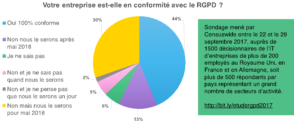 Le nouveau règlement européen sur la protection des données est entré en vigueur le 25 mai 2018. Une étude internationale réalisée fin 2017 a montré que seulement 44 % des entreprises européennes avaient déjà effectué ce travail. Les enjeux liés à la mise en conformité vis-à-vis des services cloud sont donc prioritaires.