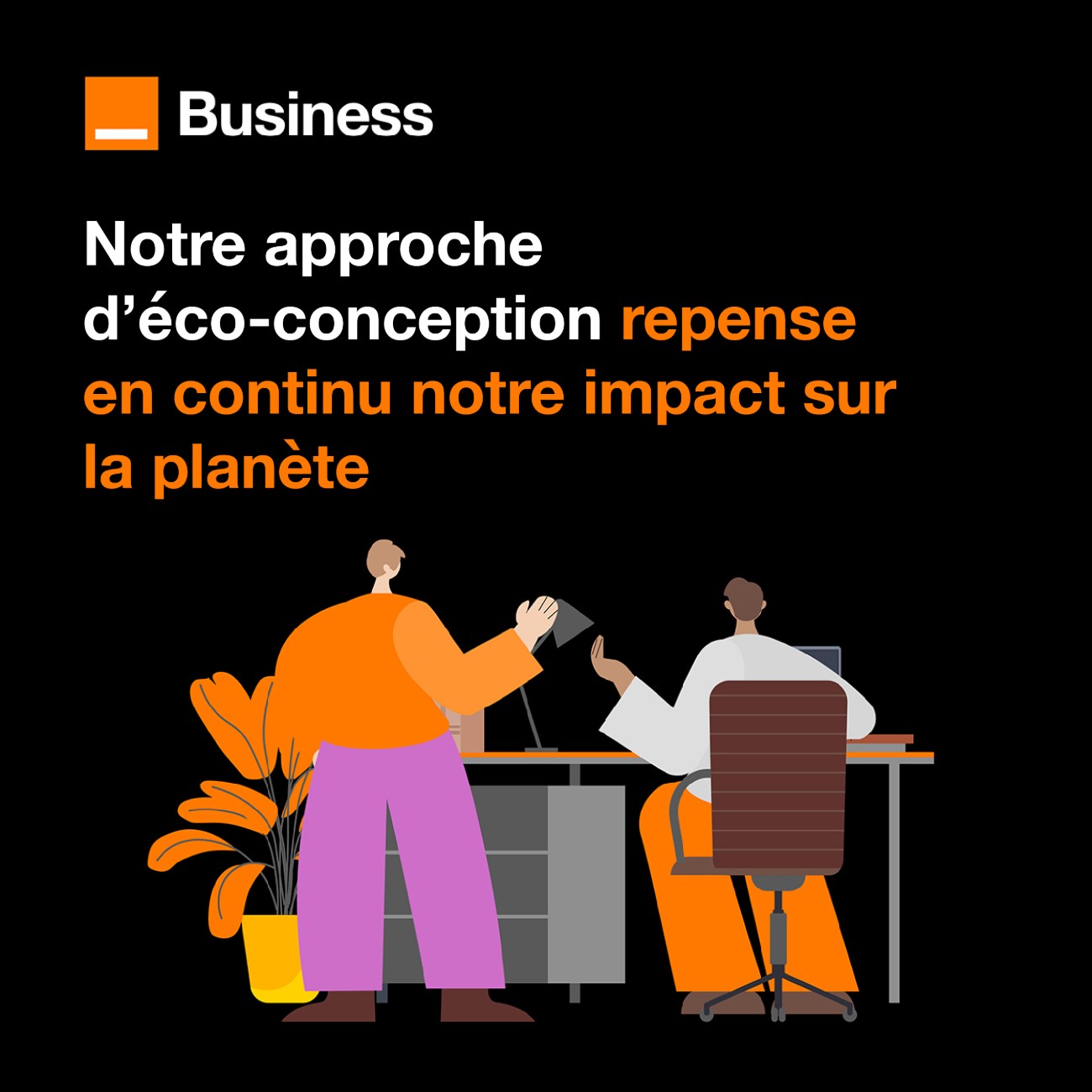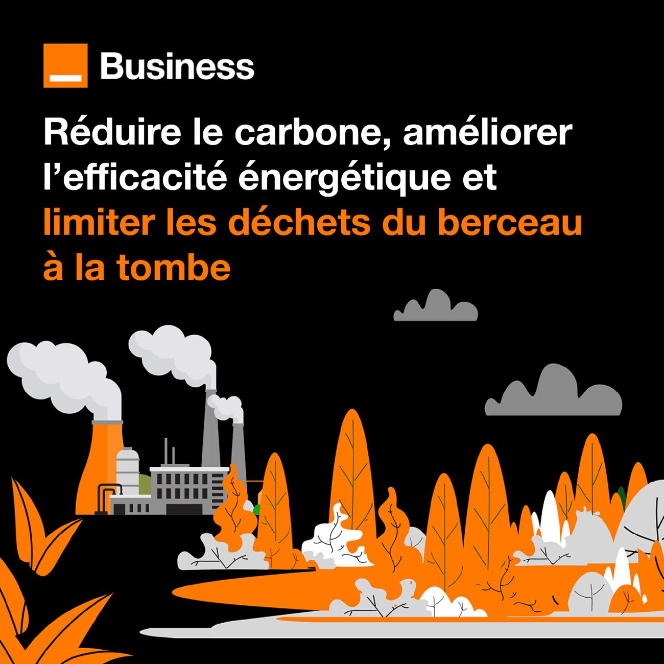Chez Orange Business, nous investissons massivement dans la création de produits et services plus éco-performants. Notre objectif est de réduire notre propre empreinte carbone ainsi que celle de nos clients, en proposant des technologies et services favorisant l’efficacité énergétique, la réduction des déchets et la décarbonation des activités commerciales.
