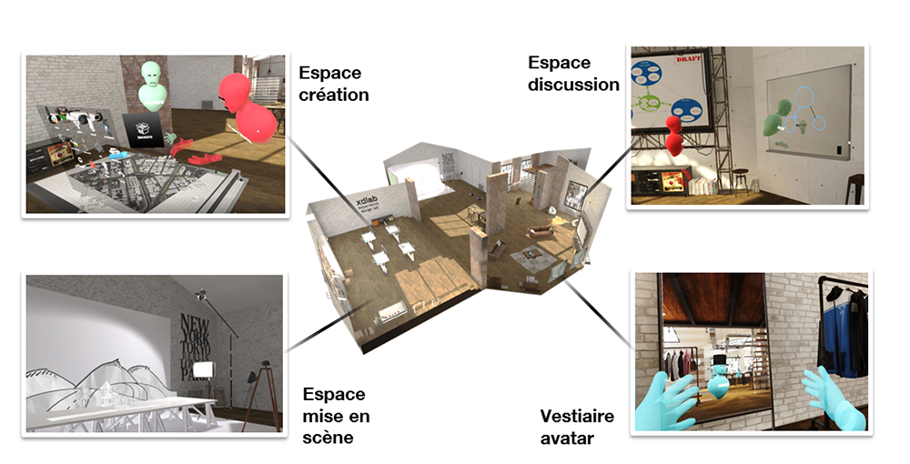 Des équipes d’Orange ont imaginé les services de visioconférence de demain et mis au point un prototype « VR Collaboration » pour HTC Vive et Oculus Rift permettant à plusieurs personnes de se retrouver de manière immersive dans un espace collaboratif, de se voir et de pouvoir communiquer sous la forme d’avatars personnalisés. Des outils collaboratifs sont alors mis à disposition des utilisateurs pour pouvoir travailler à distance, de manière immersive dans différentes typologies de réunion :