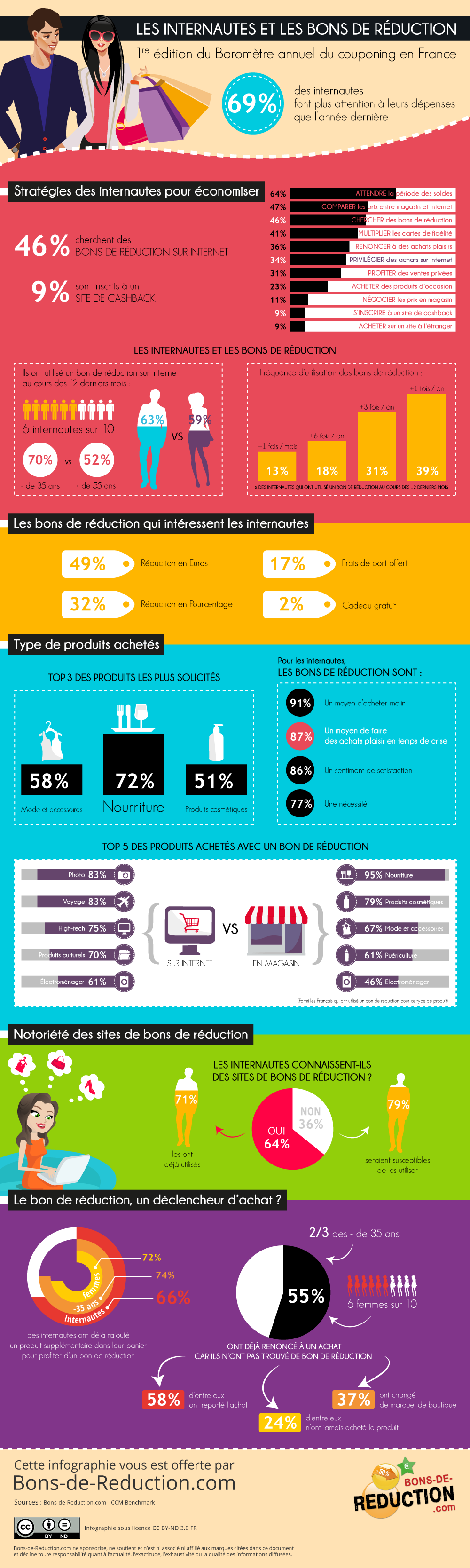 - en s’adaptant à la saisonnalité et aux moments de vie de leurs clients : offrez des avantages spéciaux et exclusifs sur mobile et internet en fonction des moments importants ! Certains consommateurs seront plus enclins à choisir un magasin affichant des prix ou des offres exclusives s’ils effectuent leurs achats sur Internet et/ou mobile. Selon le baromètre annuel du couponing en France (infographie ci-dessous), un bon de réduction peut même être déclencheur de l’achat : 66% de consommateurs ont déjà rajouté un produit supplémentaire dans leur panier pour profiter d’une telle offre. Et surtout, donnez une opportunité de partage sur les réseaux sociaux pour faire passer davantage de messages.