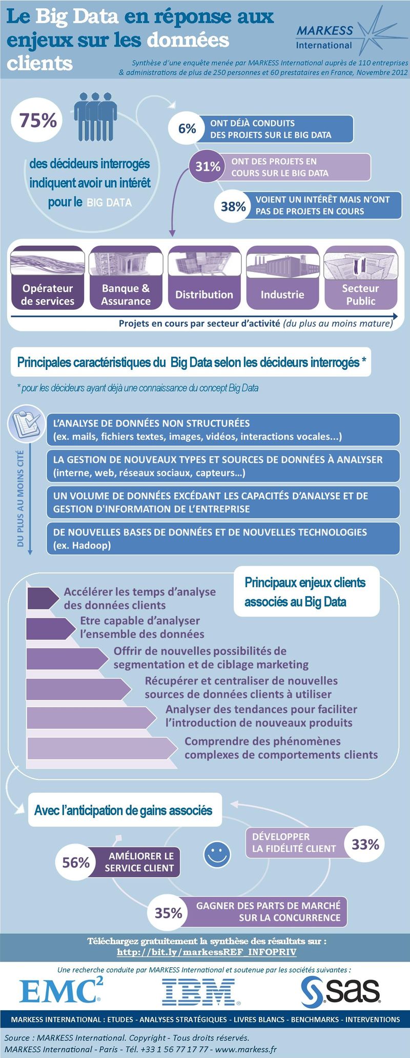 Markess International publie une infographie synthétique suite à son étude consacrée à l'exploitation des données clients avec le big data menée en 2012 auprès d’acteurs et décideurs du marché.