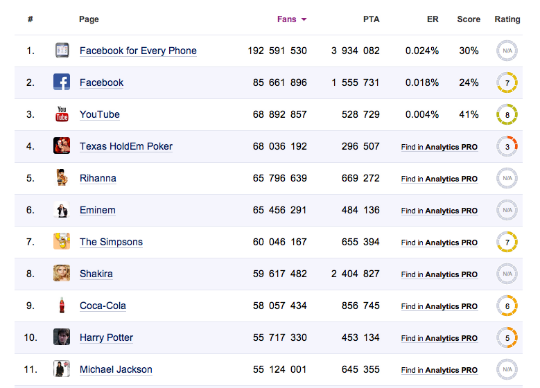 Quoi de plus tentant que de « gonfler » tous les chiffres d’audience. Le phénomène est équivalent sur les médias digitaux. Une marque présente sur les réseaux sociaux (Facebook, Twitter, Linkedin, Pinterest…) va pouvoir se comparer à d’autres marques grâce à son « ranking » dans divers classement (http://www.socialbakers.com/ par exemple).