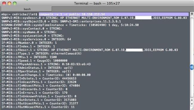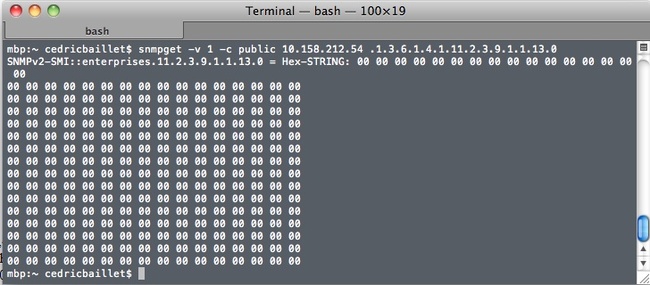 Après avoir regardé les protocoles telnet et http pour l’administration, le SNMP se rappelle soudain à ma mémoire. Comment ai-je pu l’oublier ? Un protocole qui permet d’avoir accès à tant d’informations. Après les premières découvertes, il y a forcément quelque chose qui remontera avec.