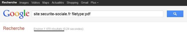 Figure 1: Recherche de documents pdf sur google pout le site securite-sociale.fr