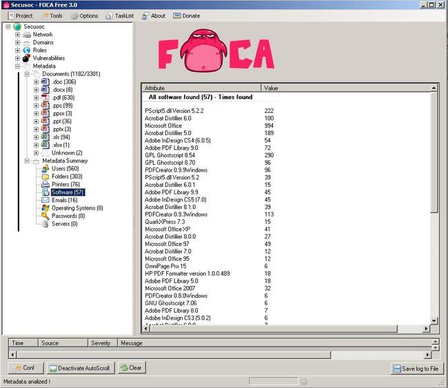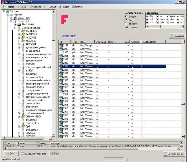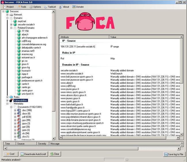 Il s’agit d’un utilitaire permettant au choix d’analyser ses propres documents ou de réaliser un vrai mapping d’un domaine pour retrouver l’ensemble des documents qui pourraient être disponibles, puis les analyser. Après avoir joué un peu avec, je n’ai qu’une seule chose à dire : bluffant.
