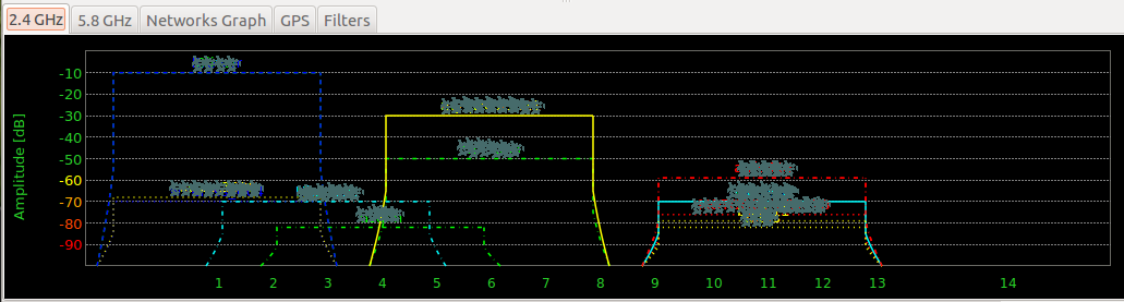 Une fois de plus, un non-initié comprend rapidement que son réseau Wifi "jaune" émettant sur le canal 6 est en collision (avec un autre réseau dont la puissance n'est que légèrement plus faible.