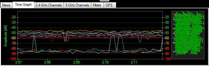 C'est sur cet objectif que l'outil me parait le plus intéressant pour un administrateur qui a détecté des lenteurs dans ses connexions Wifi et qui souhaite rapidement voir quel est le niveau de collision de son réseau avec celui des voisins :