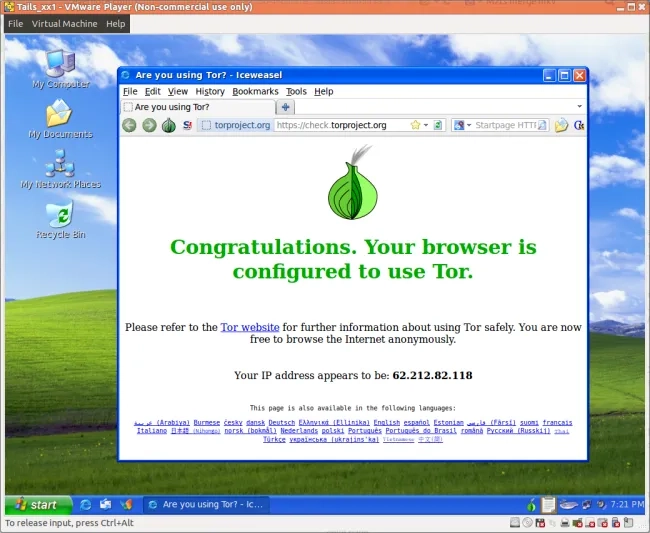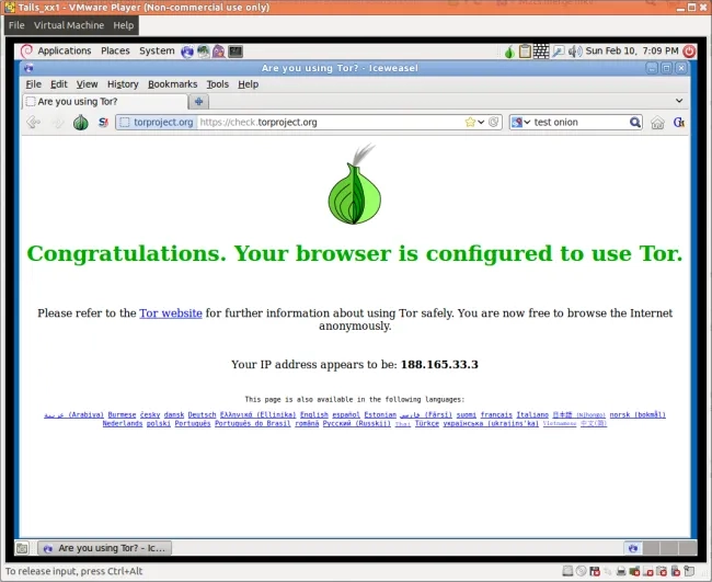 Lancer TAILS depuis une machine virtuelle fonctionne aussi très bien (perso, j'ai testé avec VMware Player). C'est pratique pour faire des screenshots ou pour ne pas être obligé de redémarrer sa machine quand celle-ci est utilisée pour faire autre chose en parallèle.