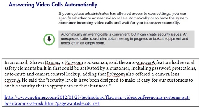 Il semblerait qu’un certain nombre de périphériques Polycom aient été/soient livrés avec la fonction auto answer activée par défaut.