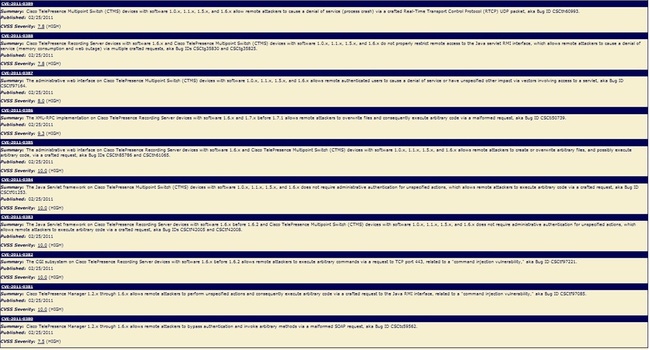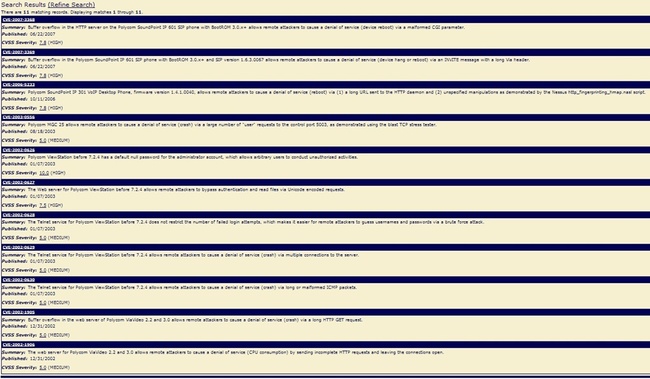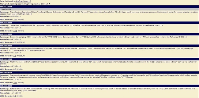 La recherche sur les failles des équipements visio a été réalisée via le site web du NIST. Il s’agit de l’une des bases officielles référençant les failles IT.