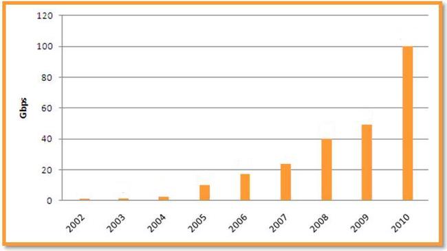 Des statistiques plus alarmantes consistent à présenter l'évolution de la consommation de la bande passante réseau par ce type d'incidents. Par exemple " Arbor Networks " le leader mondial des solutions anti-DDoS présente dans son livre blanc "Anatomy of a botnet whitepaper" l'évolution des attaques DDoS pour les 9 dernières années.