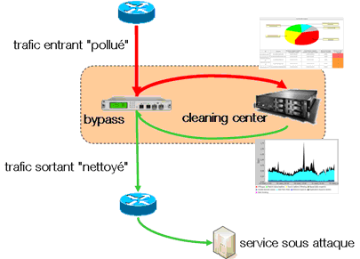 Toutefois, la dernière composante de la campagne de DDoS ciblant le client final demeure, les deux solutions ci-avant n'étant dans ce cas pas applicables. Les experts proposent alors de déployer une solution de nettoyage de trafic ("cleaning center") issues de leurs travaux et spécifiquement développée pour contrer les attaques DDoS.