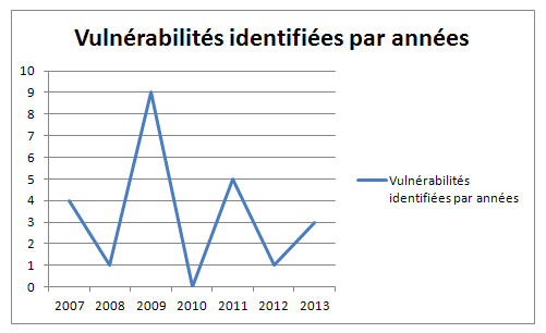 Le faible nombre de vulnérabilités permet de voir qu’assez classiquement, elles apparaissent par bouffée lorsque quelqu’un se penche un peu sérieusement sur le sujet. Les exploits disponibles, notamment ceux exploitants les possibilités de type « information disclosure », restent d’une simplicité déconcertante, aussi simple qu’une url quasi directe… On pourra retrouver certains de ces derniers sur des sites comme http://www.exploit-db.com/ ou encore http://1337day.com/search.