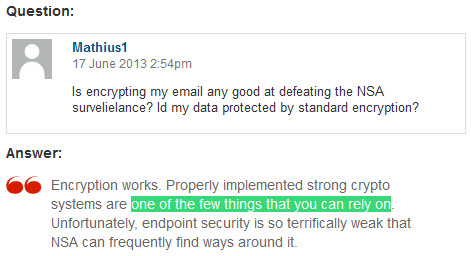 - le Washington Post a souligné le fait que Google et Facebook étaient déjà passé à l'étape supérieure (de la confidentialité persistante et des clés plus longues, respectivement)