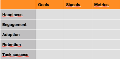 Au travers de sa framework “HEART” dédiée à la mesure de l’expérience utilisateur, Google confirme que la définition des objectifs (Goals) est la première des choses à mettre en place. Les objectifs doivent ensuite être traduits en actions ou signaux (Signals) qui donnent des indications sur les sentiments (satisfaction ou frustration) et le comportement des utilisateurs (points de douleur ou réussites).