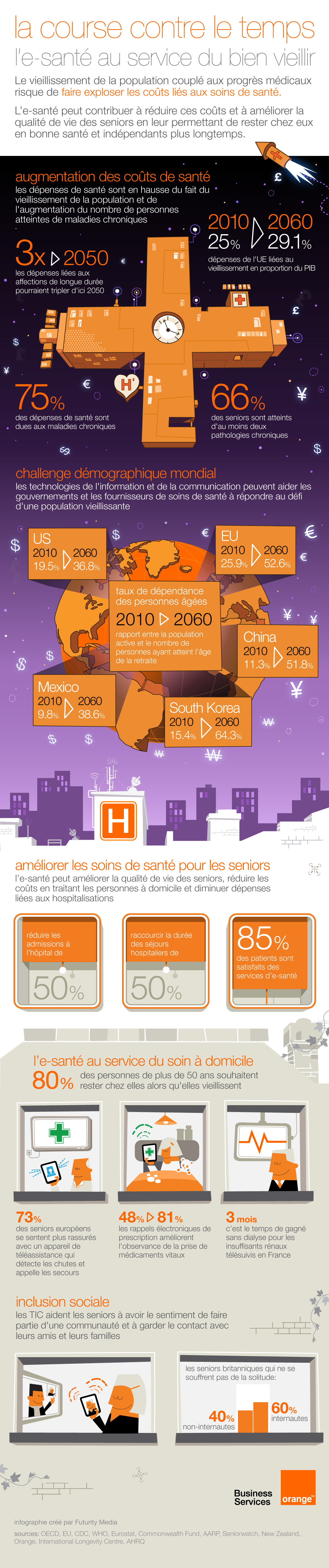De nombreuses adaptations vont être nécessaires pour relever positivement et humainement ce défi : sociétales, familiales, techniques et financières. Dans ce contexte, l’e-santé un rôle majeur à jouer ! Alors que 80% des personnes âgées souhaitent rester chez elles quand elles vieillissent, et quand on sait que le coût du maintien à domicile pour des personnes dépendantes est quatre fois moins élevé qu’une hospitalisation… c’est facile à concevoir.