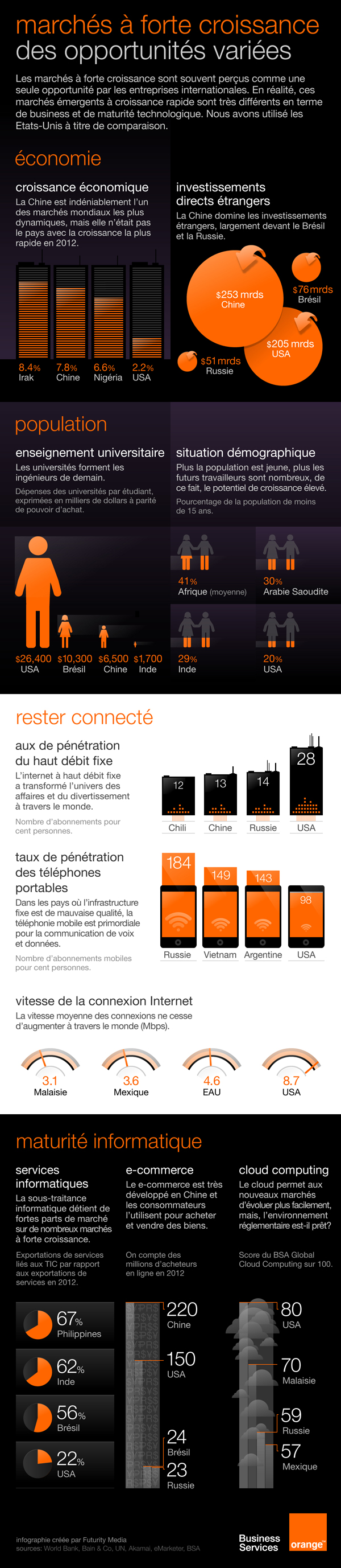 Depuis que l’acronyme BRIC (Brésil, Russie, Inde & Chine) a été créé en 2001, les marchés à forte croissance sont dans le radar des chefs d’entreprises, dans l’idée de stimuler la croissance future. Mais les entreprises regardent aujourd’hui plus loin que ces pays spécifiques, réalisant le potentiel de nombreux pays comme la Malaisie, l’Indonésie, le Nigeria, Arabie Saoudite, l’Afrique du Sud, les Emirats Arabes Unis, et les Philippines, pour ne citer qu’eux.