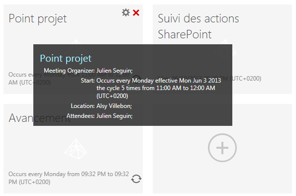 Aperçu de la webpart « AvePoint Meetings », cliquez pour élargir