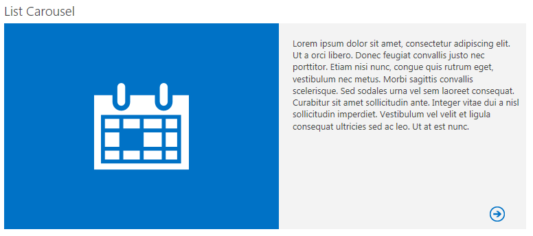 Dans la série des carrousels, vous pourrez jeter un œil également à l'app "List Carousel" qui permet d'afficher vos contenus accompagnés d'une image. Les actualités affichées dans cette webpart ne disposent malheureusement pas de la possibilité de rediriger l’utilisateur vers une URL définie par l’administrateur.