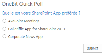 Aperçu de la webpart « OneBit Quick Poll », cliquez sur les images pour les élargir.