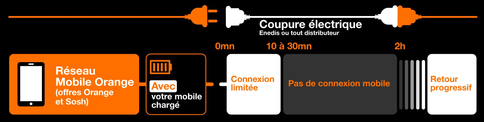 Concrètement, le réseau mobile sera inopérant 10 à 30 minutes après le début de la coupure électrique car les batteries de secours associées ne permettront pas de maintenir le signal sur toute la durée de l’opération de délestage (2h en moyenne).