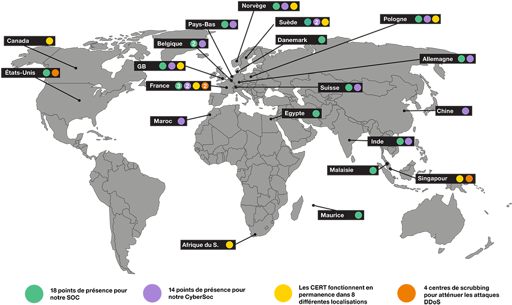 En 2022 nous avons analysé chaque jour plus de 50 milliards d’alertes de sécurité, résolu plus de 99 000 incidents de sécurité et mené 382 missions de réponse à incident grâce à 2700 experts répartis dans le monde, 18 points de présence de nos SOC et 14 points de présence de nos CyberSOC.