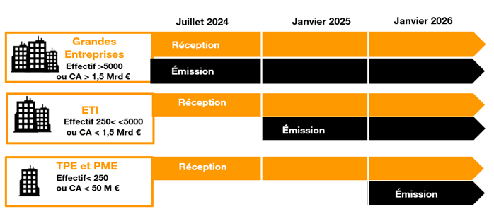 L’émission des factures électroniques sera généralisée progressivement, selon le calendrier prévisionnel suivant :