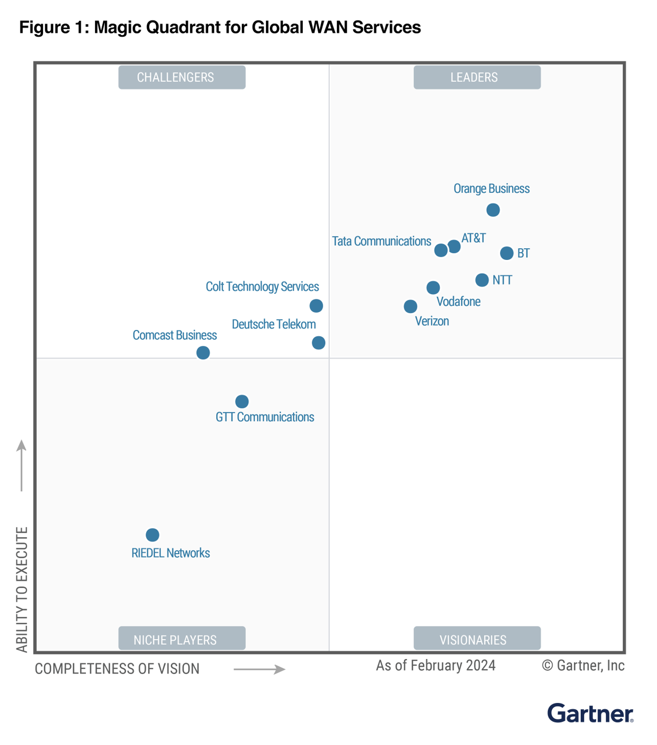 Les analystes de Gartner ont évalué les fournisseurs de services WAN à travers le monde en comparant la richesse de leur offre : fonctionnalités, qualité, processus, etc. Ils ont ainsi mis en avant la densité du réseau d’Orange Business en Europe, en Amérique latine et au Moyen Orient. Un critère clé pour les entreprises ayant besoin de services WAN à l’échelle mondiale.