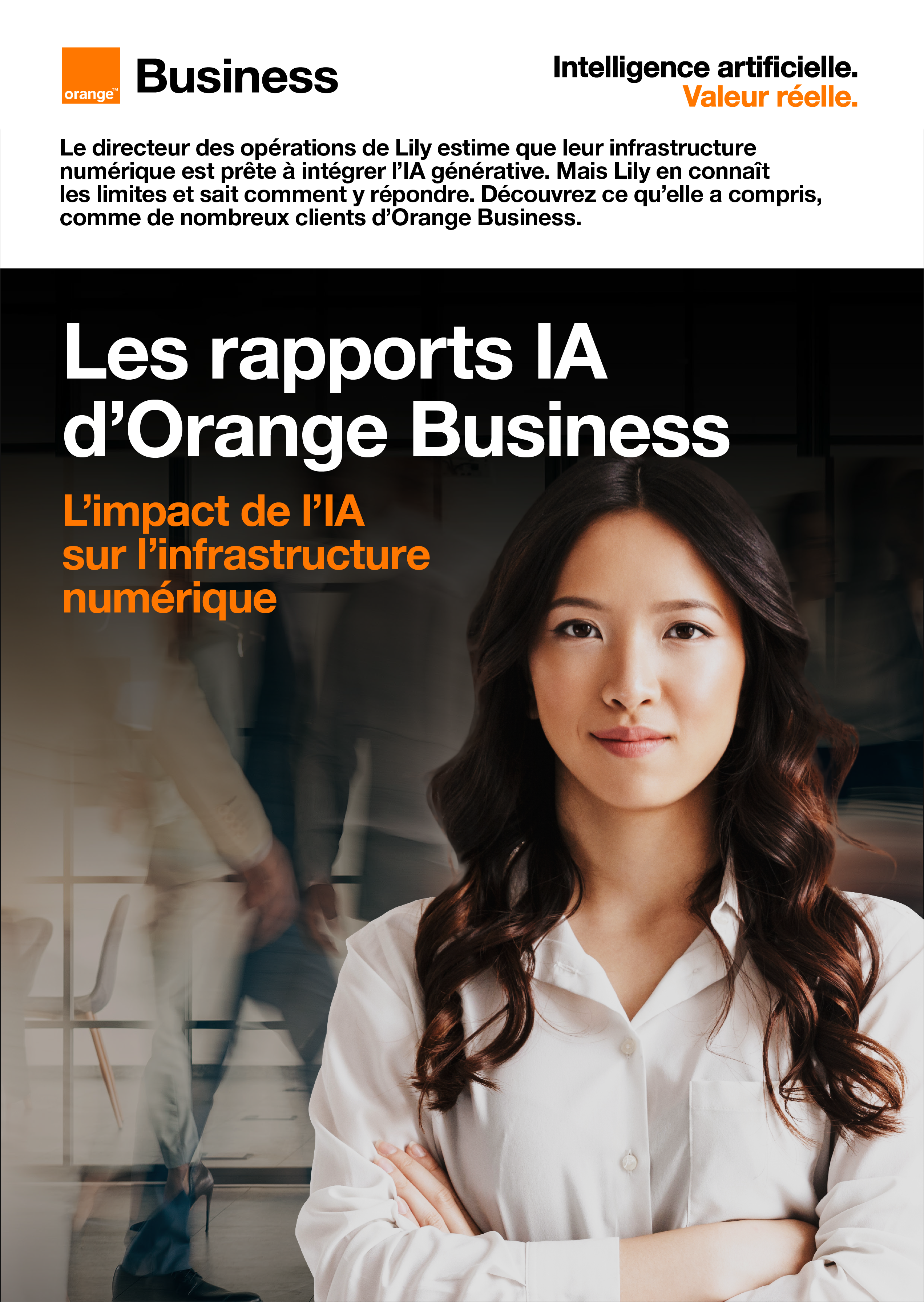 L’ensemble des enseignements clés de cette étude, ainsi que les recommandations d’Orange Business pour relever les défis identifiés, sont présentés dans cet eBook riche en informations : « IA et Infrastructure Digitale ». Vous y trouverez tout ce qu’il faut prendre en compte pour faire passer vos projets pilotes en IA à des services robustes et opérationnels :