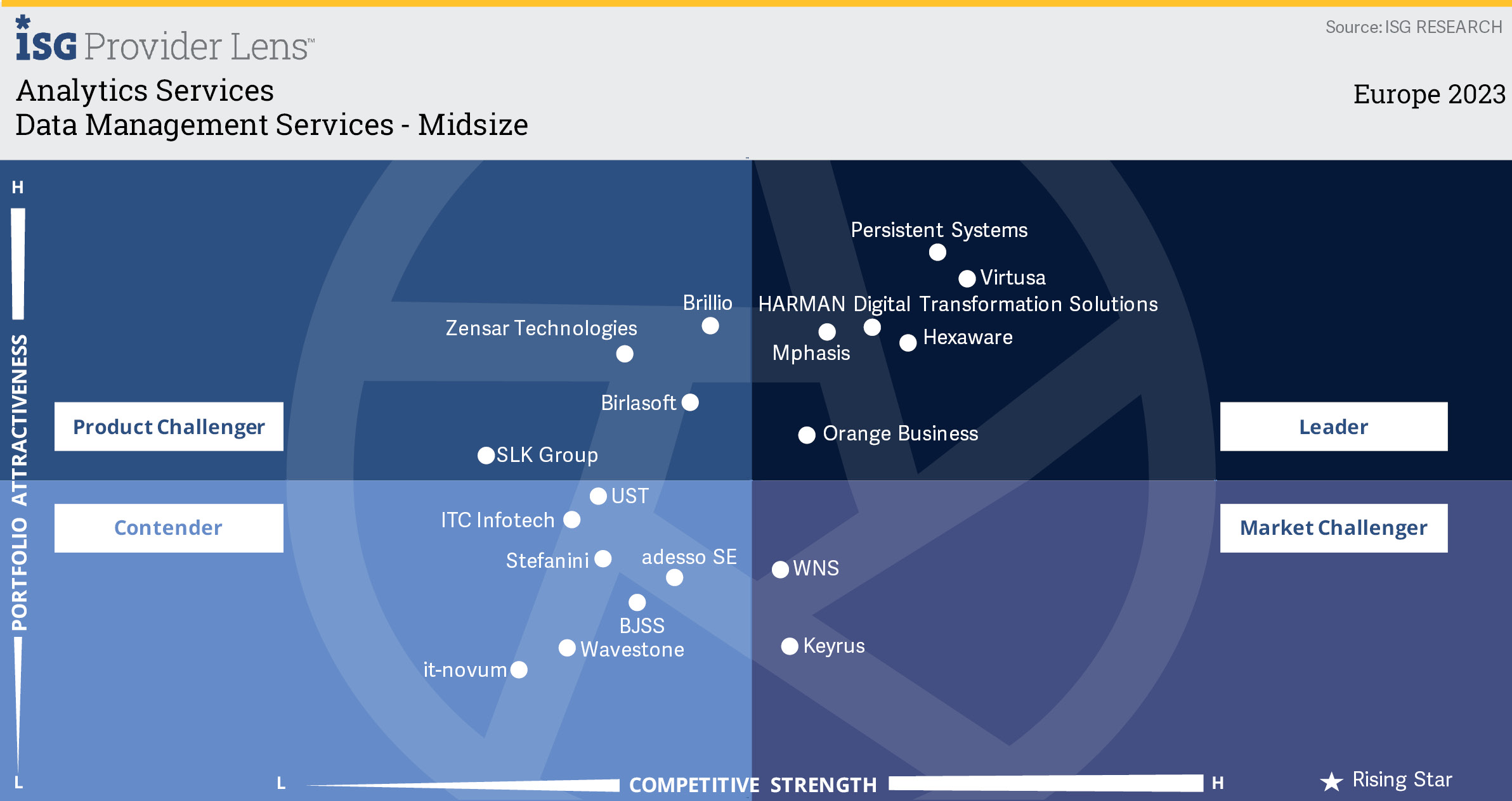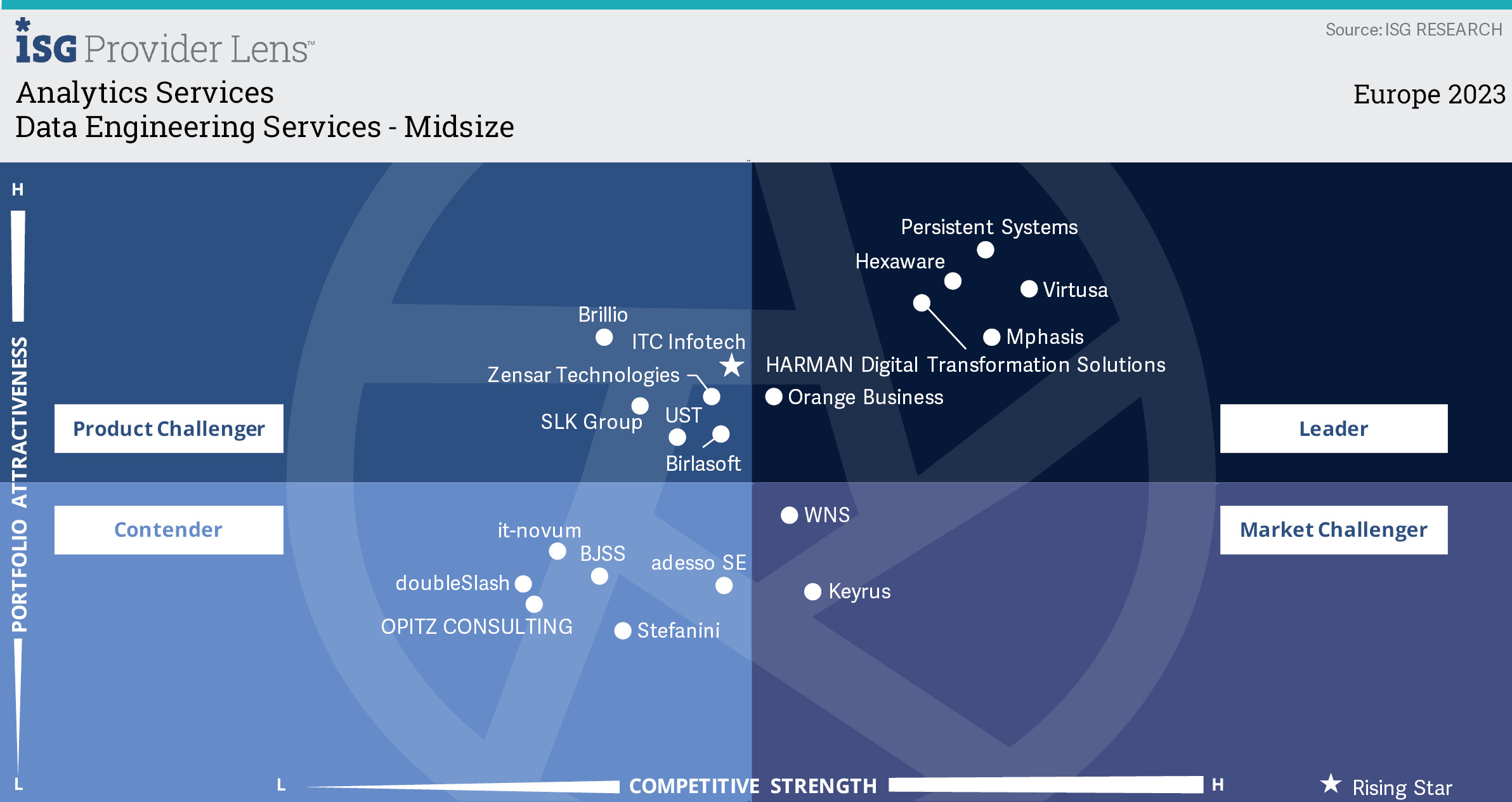 Le rapport " Analytics Services ISG Provider Lens (IPL) Europe 2023 " publié par ISG fournit une comparaison approfondie des fournisseurs de services d'analyse de données en Europe, mettant en évidence les forces, les défis et les différentiateurs concurrentiels des fournisseurs dans ce domaine en évolution rapide. Ce rapport vise à aider les responsables IT, Data, Digital ainsi que les responsables de l'innovation dans le développement de leurs connaissances marketing et la prise de décisions.