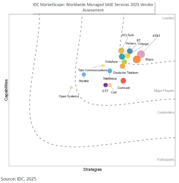 Orange est positionné comme Leader dans le rapport IDC MarketScape 2025 sur les services SASE managés à l’échelle mondiale. IDC souligne la portée mondiale du réseau d’Orange, la solidité de son écosystème de partenaires, sa plateforme Evolution avancée, ainsi que la forte intégration des réseaux, de la sécurité et des opérations pilotées par l’IA pour accompagner la transformation numérique et sécuritaire des grandes entreprises.