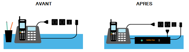 Ce boîtier est à relier au téléphone et à la prise murale pour bénéficier de la téléphonie sur IP.
