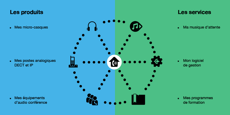 Différentes catégories de produits et de services s’ajoutent à votre solution de téléphonie et de collaboration pour accroître le bien-être et la productivité de vos collaborateurs et ainsi améliorer la satisfaction de vos clients finaux.