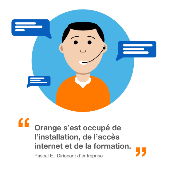 Nos formules comprennent les outils de collaboration dont vous avez besoin et des services qualité Orange Business. Nous gérons tout, vous n’avez plus qu’à vous concentrer sur l’essentiel : vos clients.
