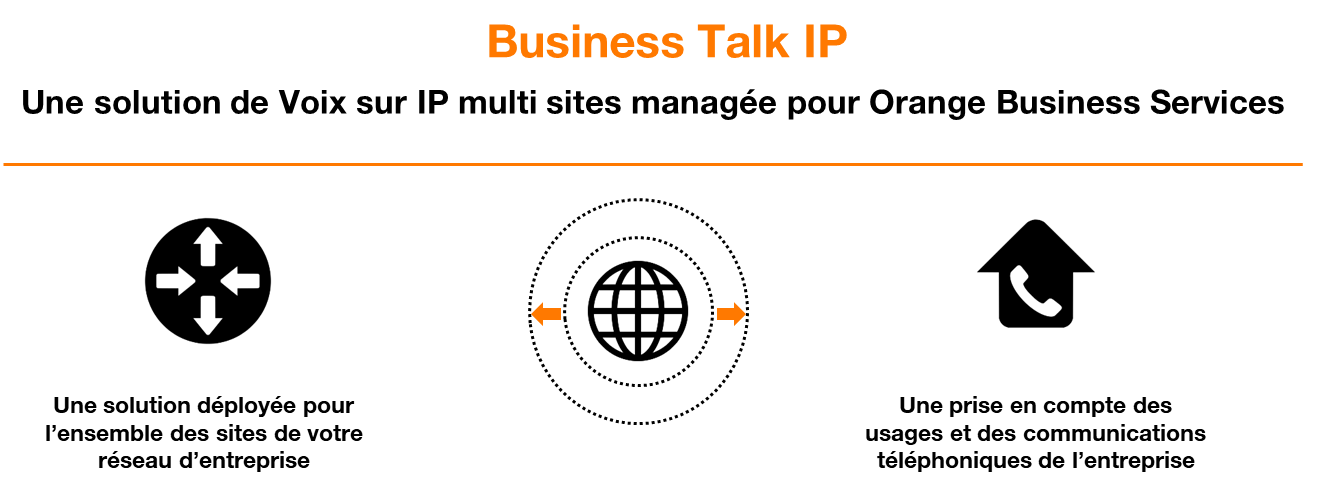 Les appels entre tous les sites Business Talk IP sont inclus et les communications en dehors du réseau Business Talk IP sont facturées au forfait ou au compteur.