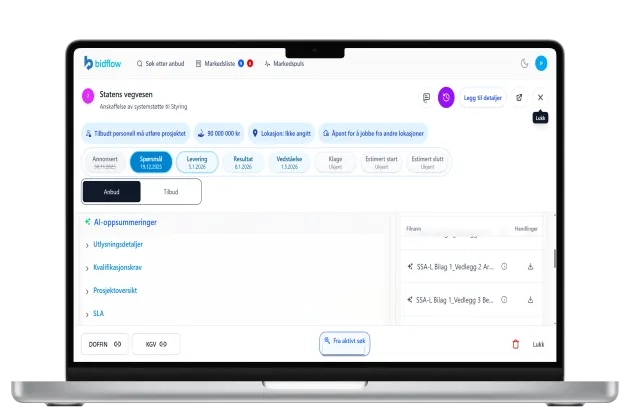 Bidflow er en teknologibedrift fra Trøndelag som tilbyr en plattform for smartere anbudshåndtering, drevet av kunstig intelligens.